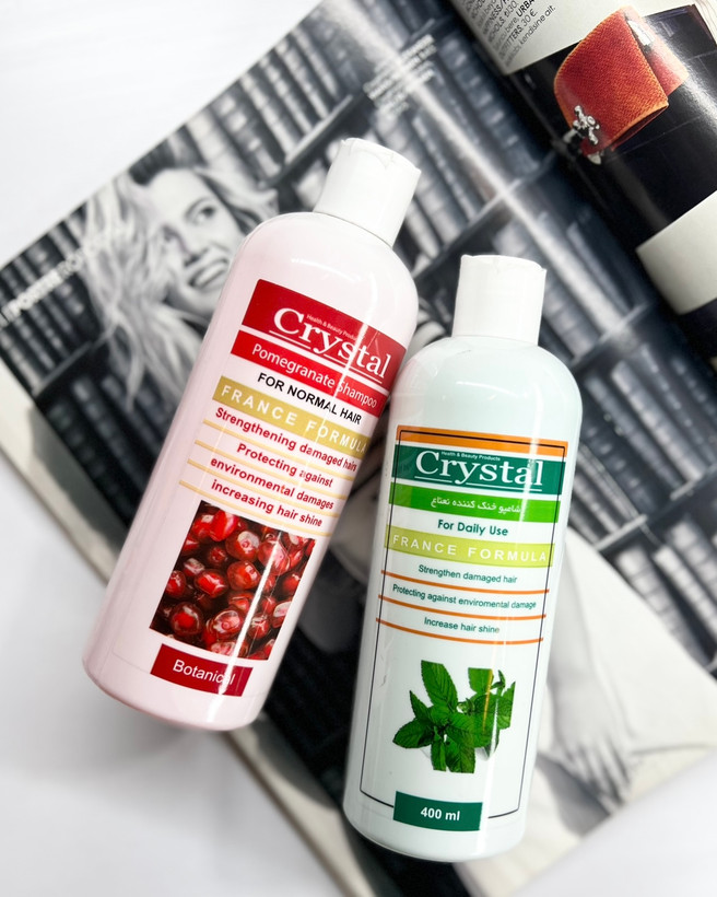 4.شامپو انار کریستال مناسب موهای رنگ شده 400 میلی لیتر:شامپو انار کریستال مناسب موهای رنگ شده با بهرهمندی از خاصیت آنتی اکسیدانی، از آسیب رساندن رادیکالهای ازاد بر فولیکولهای سلول جلوگیری میکند که سبب پایداری و دوام رنگ مو میشود.